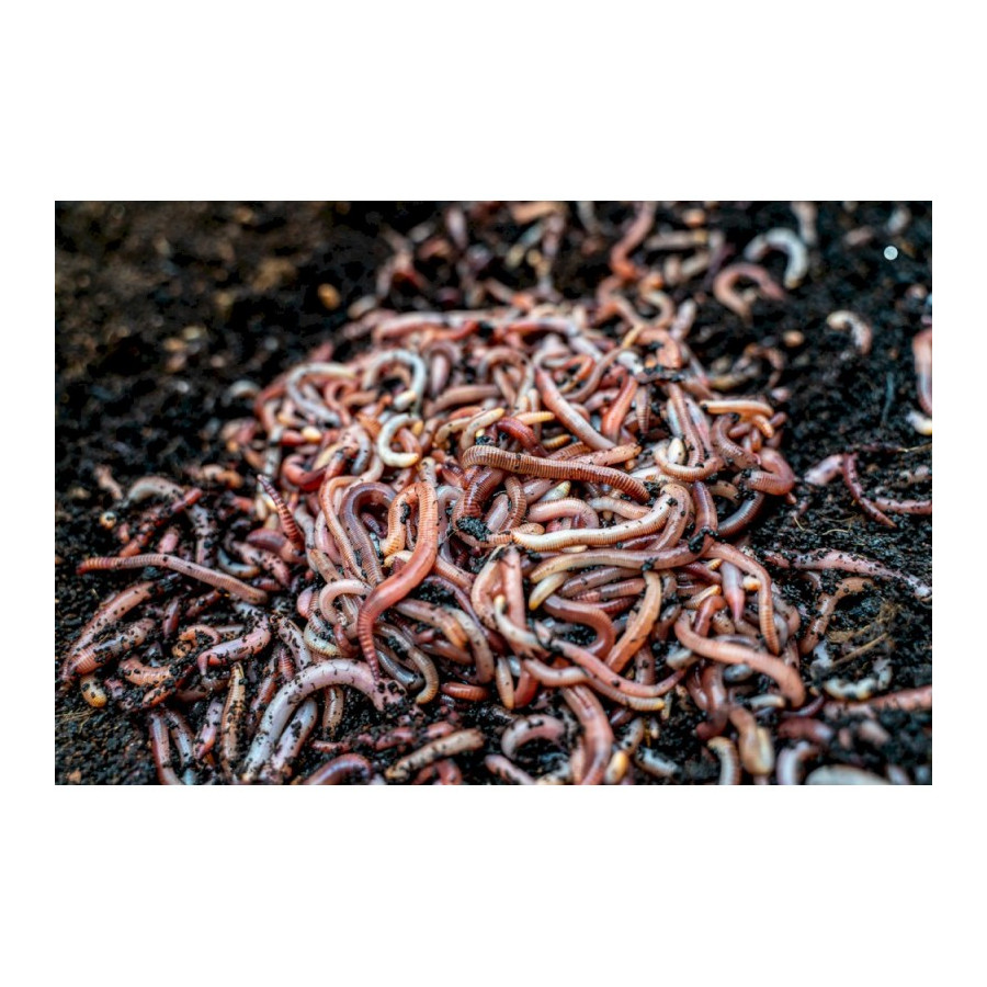 35 sztuk dżdżownic kalifornijskich w różnym stadiu rozwoju.