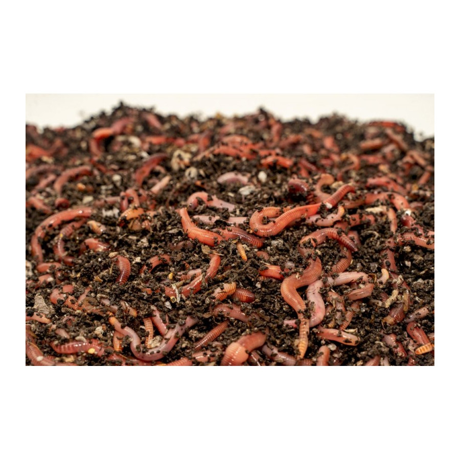 35 sztuk dżdżownic kalifornijskich w różnym stadiu rozwoju.