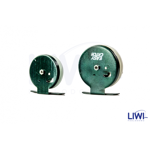 Najprostszy podlodowy kołowrotek ze wschodu, z blokadą hamulca, metalowy korpus, szpula z tworzywa.