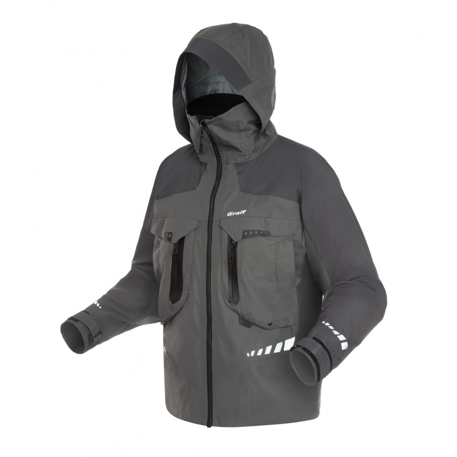 Prosty, minimalistyczny styl kompletu wędkarskiego GRAFF. Funkcjonalne rozwiązania opracowane z profesjonalnymi wędkarzami. 3-warstwowa membrana BRATEX® 20 000 mm H2O/20 000 g/m2/24 h z klejonymi szwami zapewnia 100% wodoodporność i oddychalność. Kurtka zabezpieczona jest również powłoką TEFLON® nadającą mu maksymalną odporność na wodę i brud. W kurtce zastosowano wodoodporny zamek błyskawiczny YKK® oraz zamki antybryzgowe w przy kieszeniach.