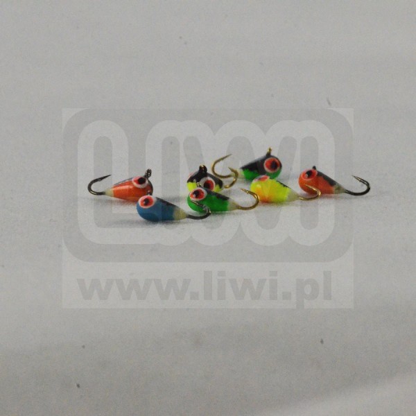 Kolory wybarwienia oraz dodatkowe elementy jak wtopiony brokat dodatkowo zwiększa atrakcyjność przynęty.