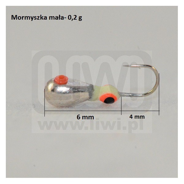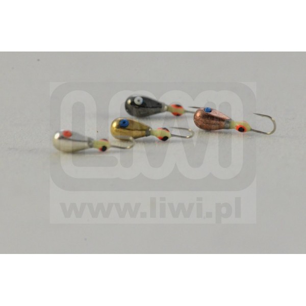 Sportowa mormyszka w kształcie gruszki ze ściętym lusterkiem, które odbijając refleksy świetlne dodatkowo wabi ryby.